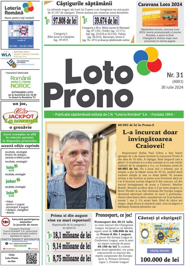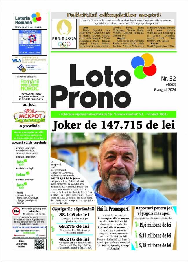 Loteria Română a virat 1.500.000 de lei către Comitetului Olimpic și Sportiv Român pentru susținerea Echipei Olimpice a României În cursul lunii mai 2024 Loteria Română a lansat lozul Team Romania în scopul susținerii Echipei Olimpice a României la Jocurile de la Paris 2024. Loteria Română a finalizat vânzarea lozului TEAM ROMANIA și în cursul…