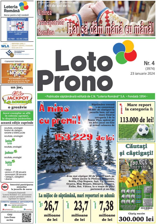 Miercuri, 24 ianuarie 2024, agențiile loto vor fi închise. Program de lucru cu publicul Aparatul Central (Plăți premii) – închis
