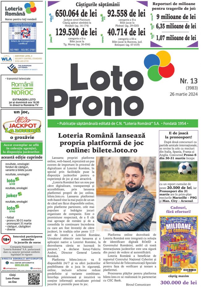 Operator gestionar loto S.Z. Cluj-Napoca/P.L.J. Salaj – 25.04.2024