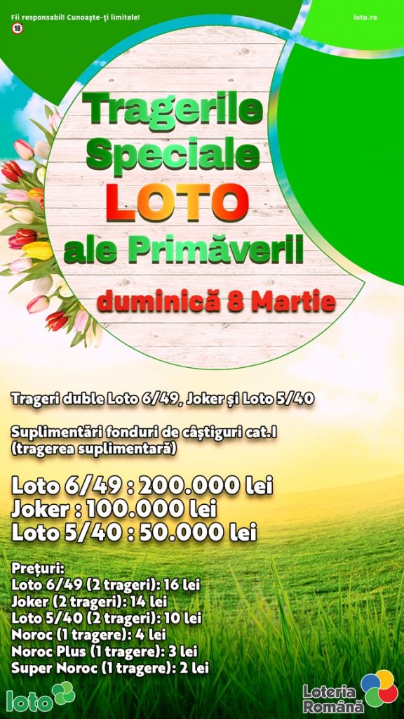 Loteria Romana organizeaza duminica, 8 martie, TRAGERILE SPECIALE LOTO ALE PRIMAVERII.