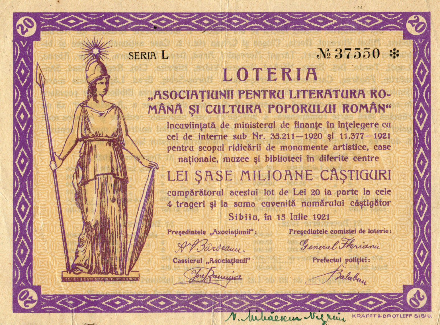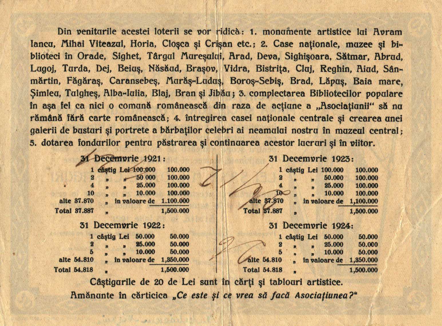 ASTRA (Asociaţiunea transilvană pentru literatura română şi cultura poporului român) care a adunat laolaltă intelectualitatea şi clasa de mijloc din Transilvania a apelat la organizarea de loterii pentru realizarea obiectivelor culturale: monumente, muzee, biblioteci etc