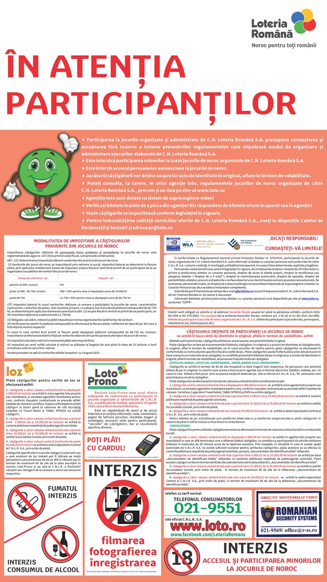 In conformitate cu Regulamentul General privind Protectia Datelor nr. 679/2016, C.N. „Loteria Romana” S.A. prelucreaza date cu caracter personal, cu buna credinta, in scopuri determinate, explicite si legitime.
