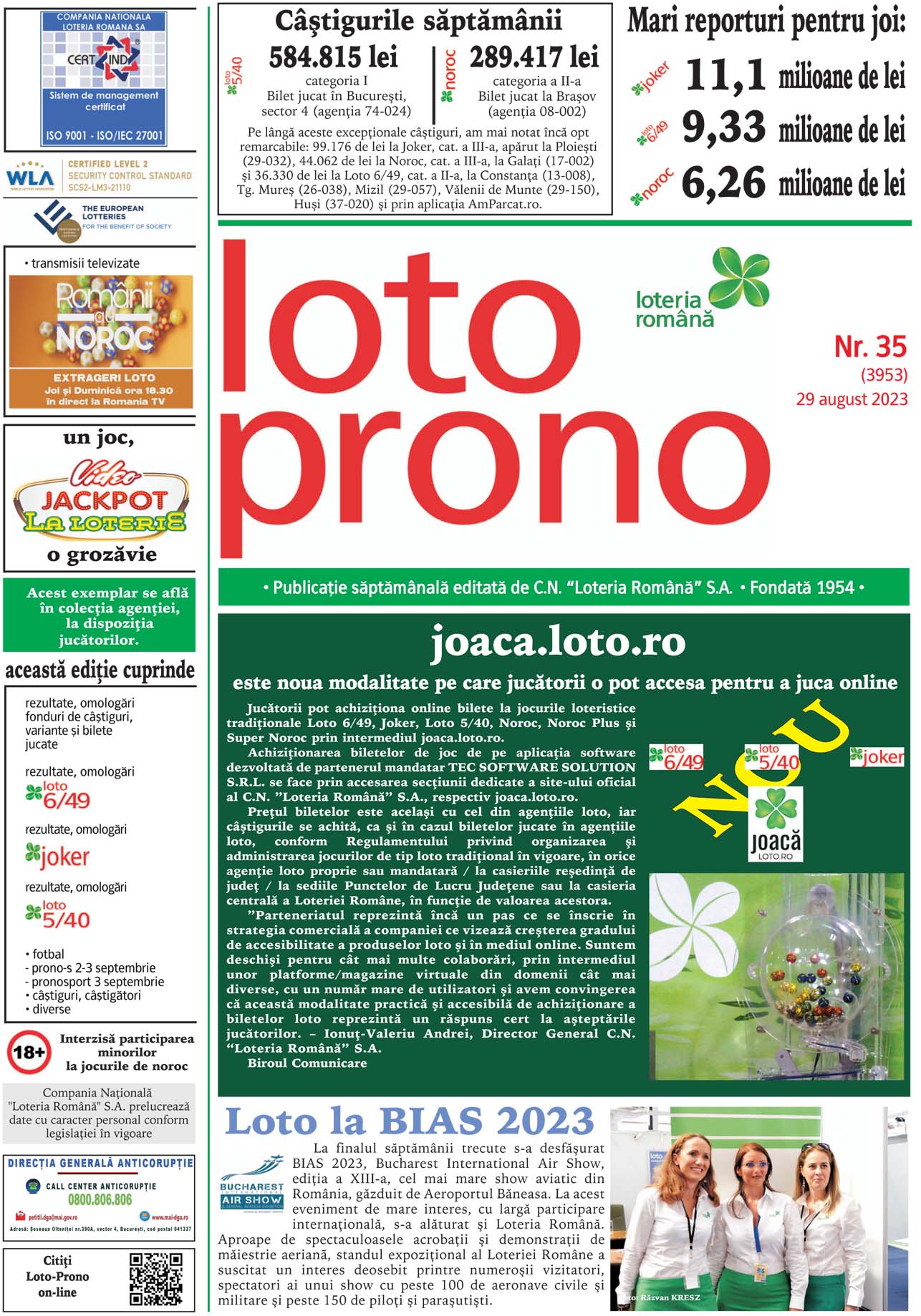 Servicii de transmisie televizata a tragerilor loto si a rezultatelor acestora