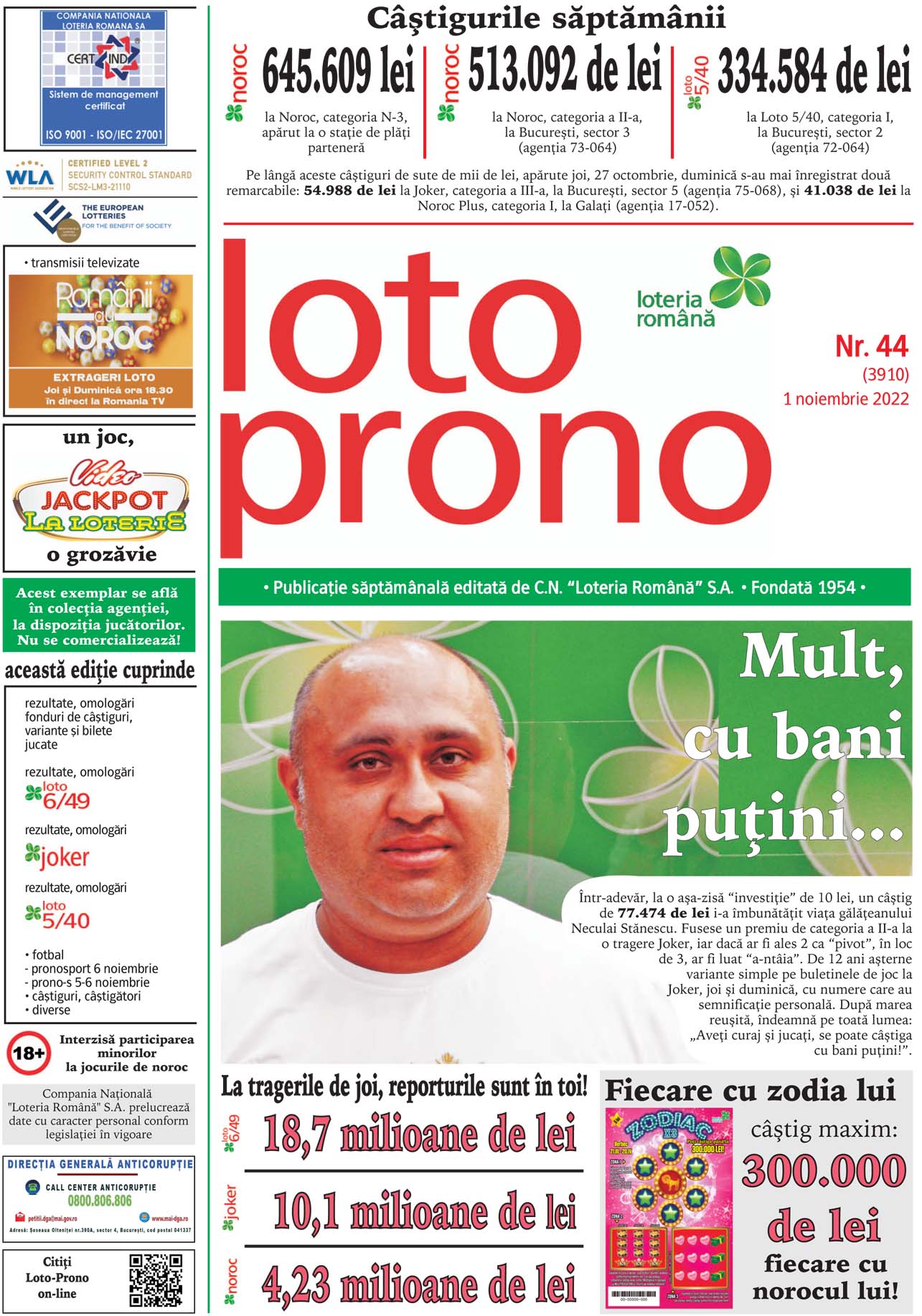 Report la Joker la categoria I de peste 2 milioane de euro TRAGERILE LOTO SE VOR DIFUZA, IN DIRECT, PE ROMANIA TV, IN CADRUL EMISIUNII “ROMANII AU NOROC”, INCEPAND CU ORA 18:30 Joi, 3 noiembrie, vor avea loc noi trageri Loto 6/49, Noroc, Joker, Noroc Plus, Loto 5/40 si Super Noroc, dupa ce la…