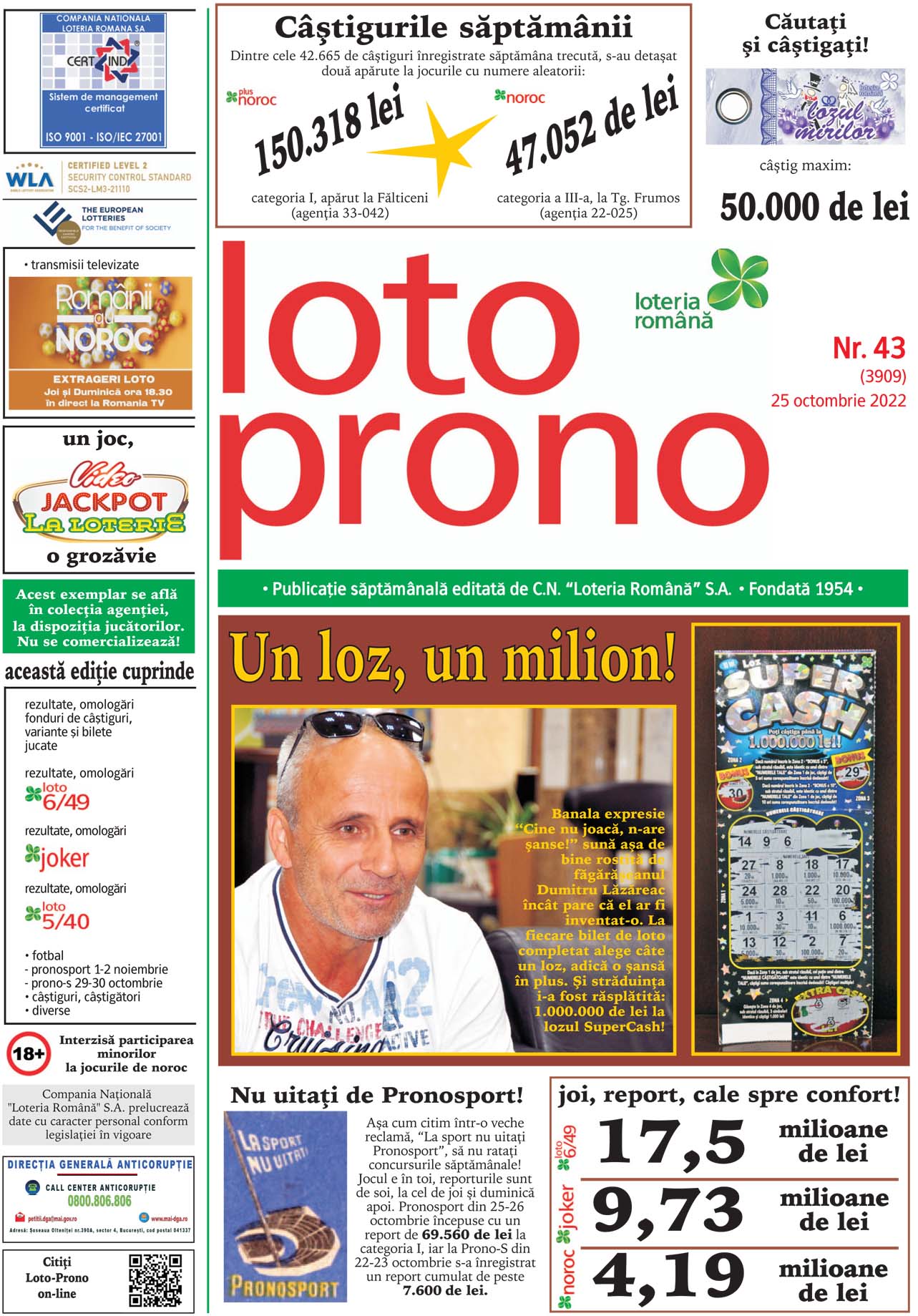 Report la Joker la categoria I de peste 2 milioane de euro TRAGERILE LOTO SE VOR DIFUZA, IN DIRECT, PE ROMANIA TV, IN CADRUL EMISIUNII “ROMANII AU NOROC”, INCEPAND CU ORA 18:30 Duminica, 30 octombrie, vor avea loc noi trageri Loto 6/49, Noroc, Joker, Noroc Plus, Loto 5/40 si Super Noroc, dupa ce la tragerile…