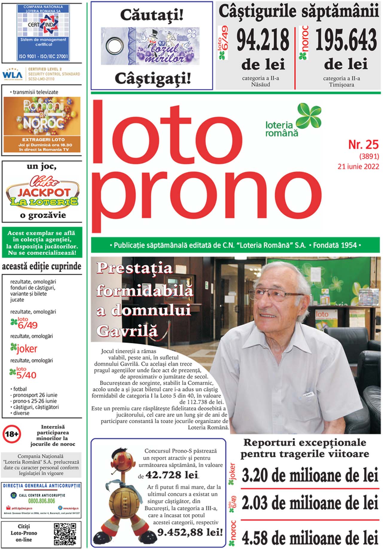 Duminica, 19 iunie, vor avea loc noi trageri Loto 6/49, Noroc, Joker, Noroc Plus, Loto 5/40 si Super Noroc, dupa ce la tragerile loto de joi, 16 iunie, Loteria Romana a acordat peste 13.600 de castiguri in valoare totala de peste 668.700 de lei. La Loto 6/49 se inregistreaza la categoria I un report in…