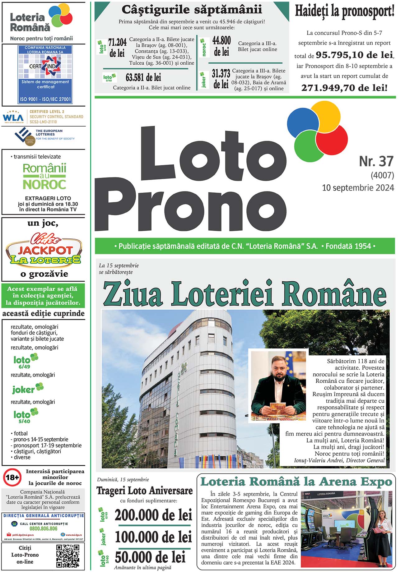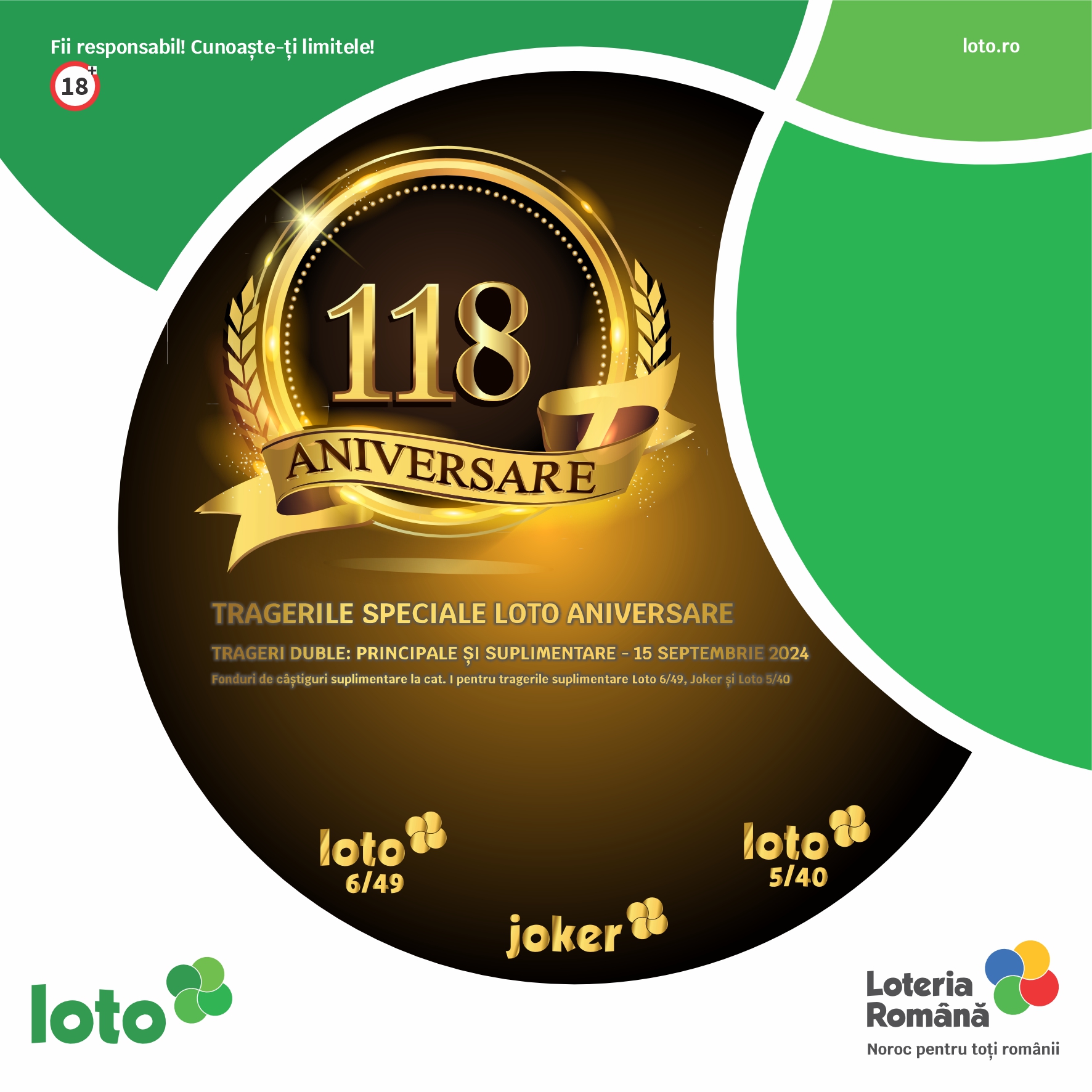 Trageri duble pentru jocurile Loto 6/49, Joker si Loto 5/40 TRAGERILE LOTO SE VOR DIFUZA, IN DIRECT, PE ROMANIA TV, IN CADRUL EMISIUNII “ROMANII AU NOROC”, INCEPAND CU ORA 18:30 Loteria Romana sarbatoreste 118 ani de activitate fiind astfel una dintre cele mai importante companii romanesti cu o importanta traditie in sustinerea proiectelor de interes…