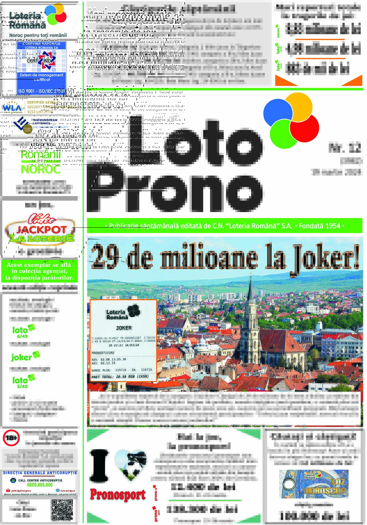 DetailsReport cumulat la Noroc de peste 1,77 milioane de euro TRAGERILE LOTO SE VOR DIFUZA, IN DIRECT, PE ROMANIA TV, IN CADRUL EMISIUNII “ROMANII AU NOROC”, INCEPAND CU ORA 18:30 Joi, 21 martie, vor avea loc noi trageri Loto 6/49, Noroc, Joker, Noroc Plus, Loto 5/40 si Super Noroc, dupa ce la tragerile loto de…