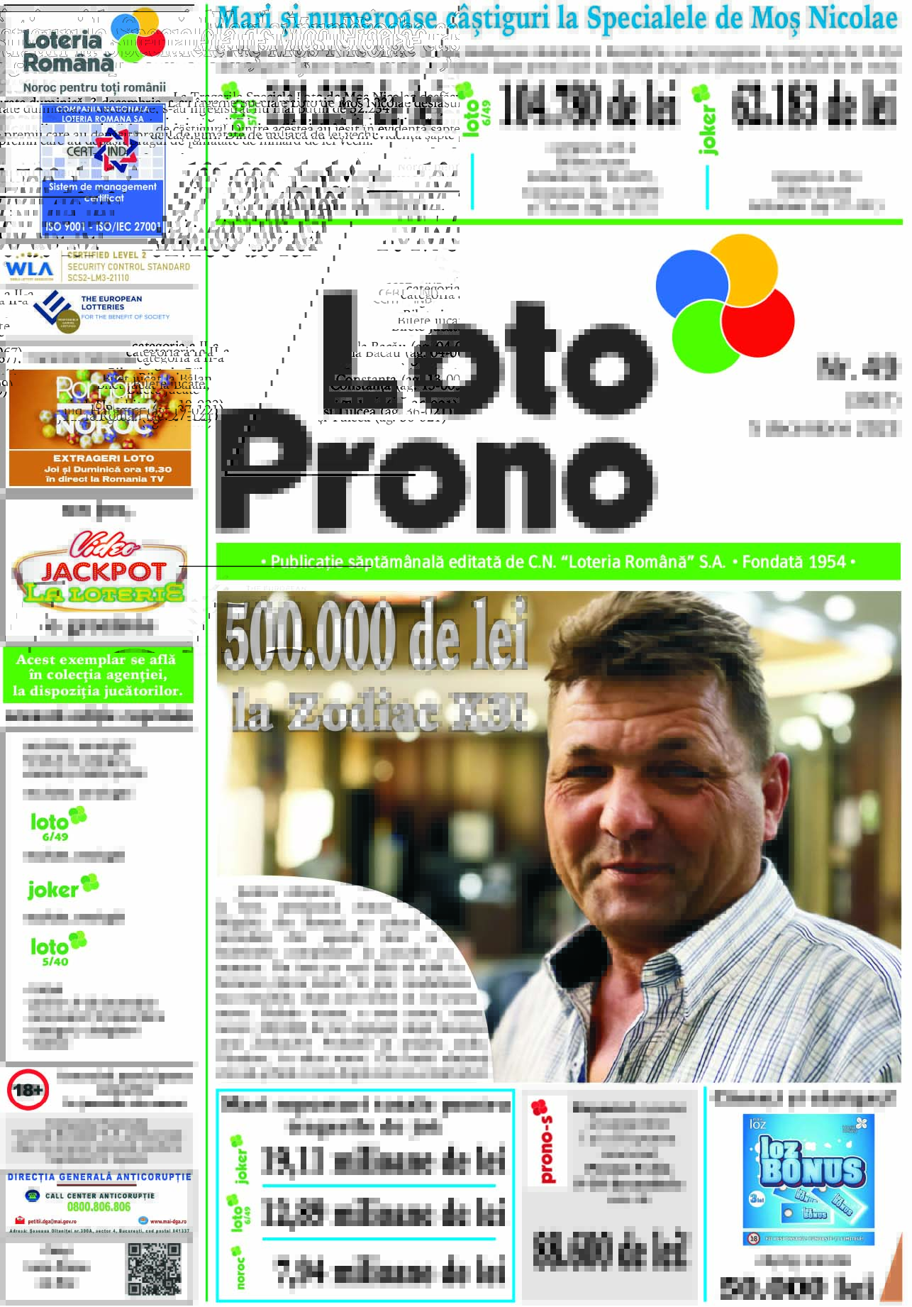 Report la Loto 6/49 la categoria I de peste 2,83 milioane de euro Report cumulat la Noroc de peste 1,59 milioane de euro TRAGERILE LOTO SE VOR DIFUZA, IN DIRECT, PE ROMANIA TV, IN CADRUL EMISIUNII “ROMANII AU NOROC”, INCEPAND CU ORA 18:30 Joi, 14 decembrie, vor avea loc noi trageri Loto 6/49, Noroc, Joker,…